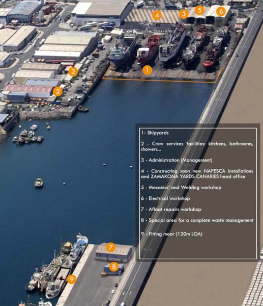 The privileged geografical and strategic location in the Port of Las Palmas de Gran Canaria as well as the excellent weather in the area make of Repnaval the suitable and idealistic place for repairing, maintenance and transformation vessels.